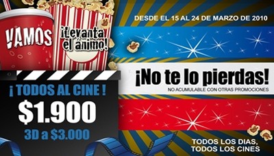 Todos los días y en todos los cines del país los tickets tendrán un valor de 1900 pesos y 3000 pesos en caso de las…